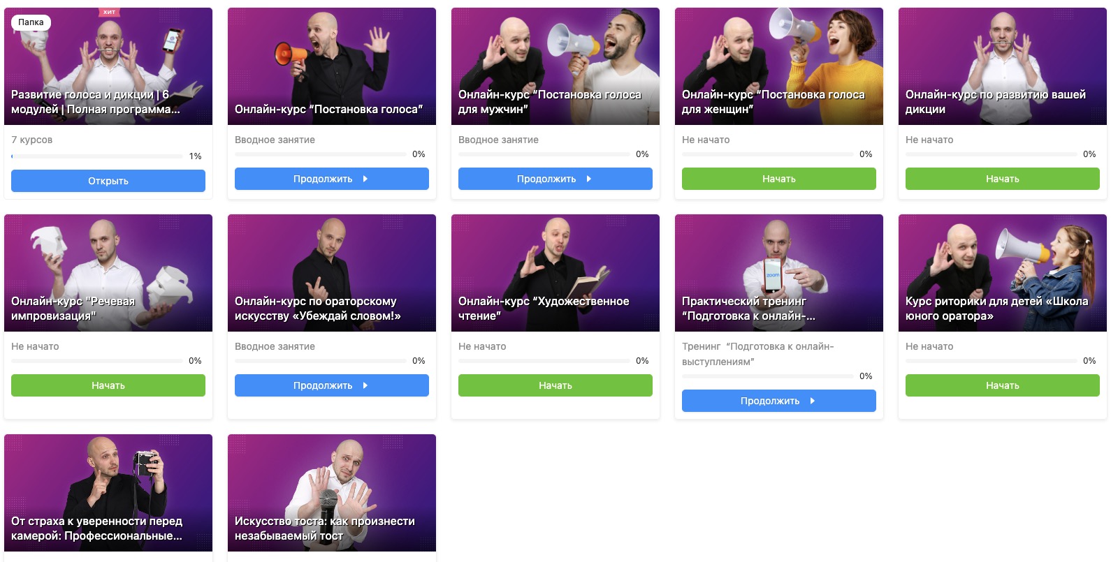 Присоединяйтесь к нашему эксклюзивному годовому курсу по постановке голоса и речи! Всего 15 минут в день для заметных результатов. Программа включает 24 комплекса тренировок и 180 уникальных упражнений, которые помогут вам: